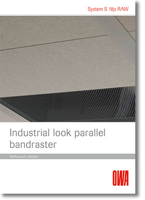 Az S 18p RAW termékcsalád az OWA Design Team új alkotása, RAW concrete álmennyezet és színes Mesh mezők harmonikus kombinációja. Meghatározó jellemzője a vizuális megjelenés eredetisége és a magas akusztikai teljesítmény.