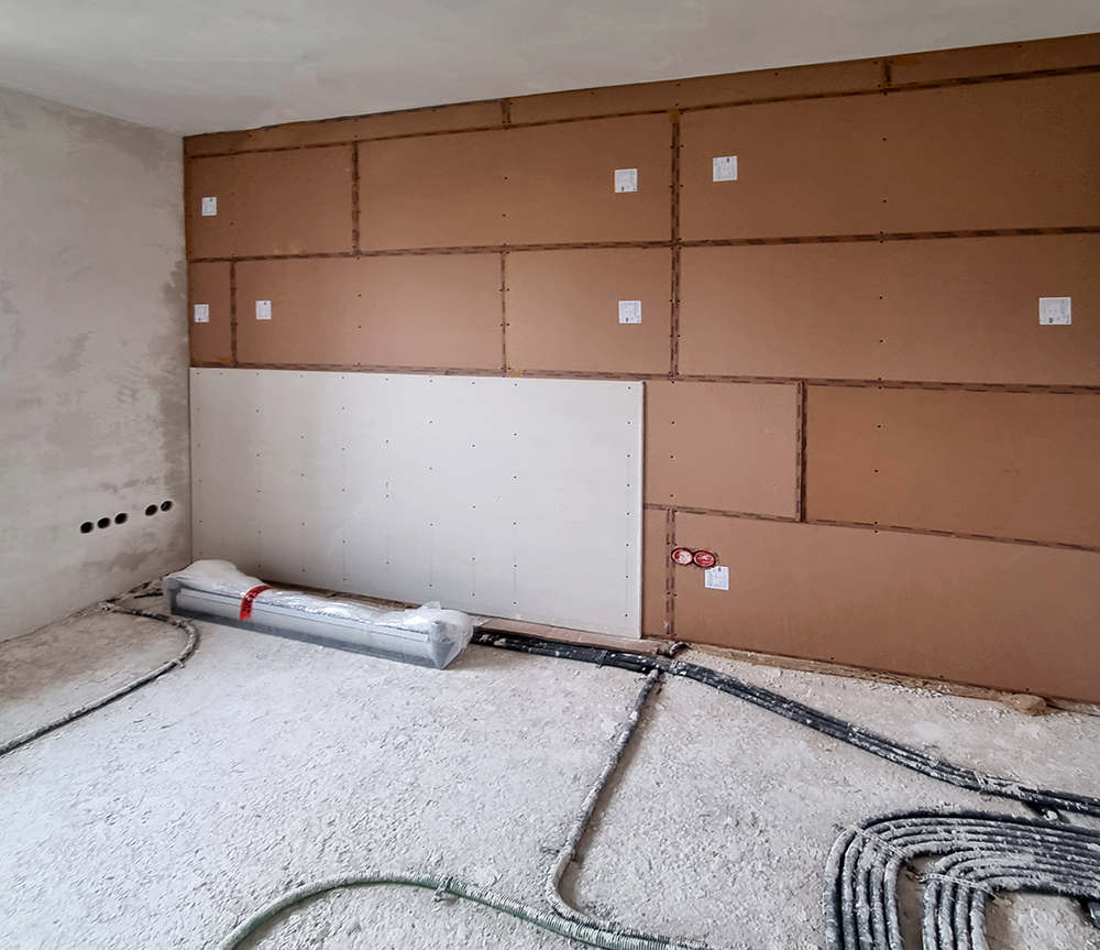 - könnyűszerkezetes épületeknél, szárazépítés során,