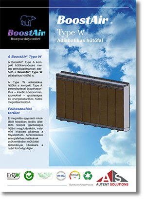 A BoostAir type A egy 100 %-ban ipari felhasználásra tervezett, adiabatikus elven működő hűtő-szellőztető berendezés. Alkalmas nagy légáramú szellőztetésre és ugyanezen légáram biztosítása melletti hűtésre is.