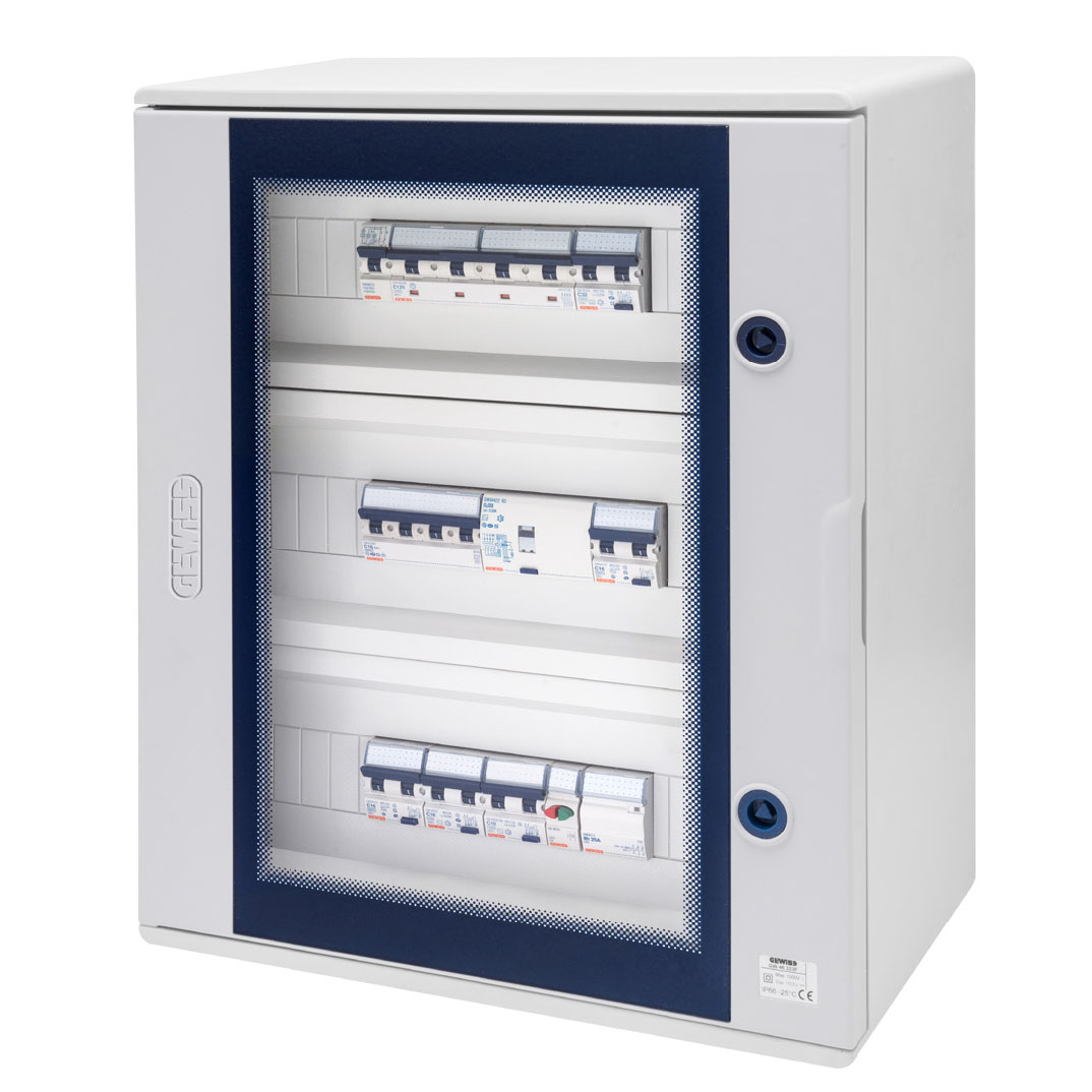 A GEWISS a csatlakozódobozok és tokozatok piacvezető szállítójaként a felületre szerelt és süllyesztett szerelésű elosztószekrények és -táblák teljes, egységes termékcsaládját is kínálja.