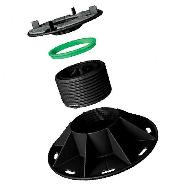 A kültéri emelt padlók Profilpas támaszai nagy teljesítményű polipropilénből készülnek, ellenállnak a nagy terhelésnek és a hőmérséklet-változásoknak, és megakadályozzák a víz pangását.