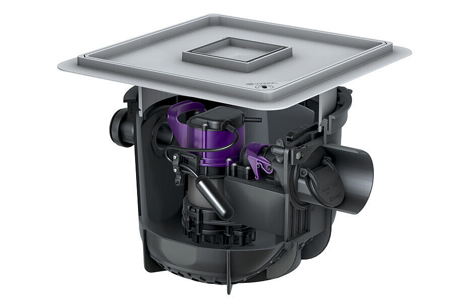 Ha a csatorna magasabban van, mint az épületben lévő vízelvezetési hely, a szennyvizet a visszatorlódási szint fölé kell szivattyúzni, például egy KESSEL Aqualift átemelő állomással.