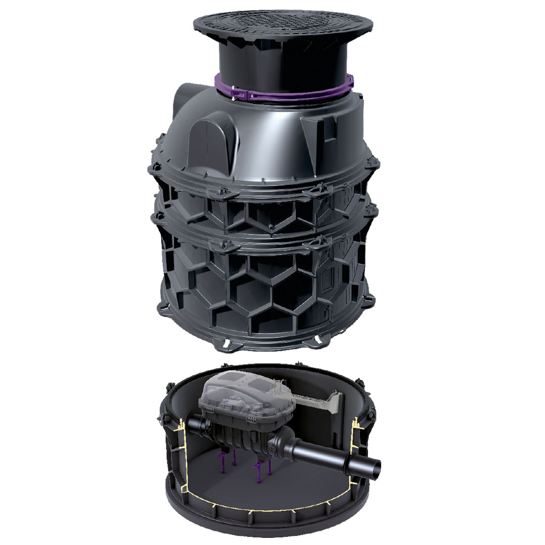 Az épület előtti visszatorlódás-gátló akna jelentős előnyöket kínál. Lehetővé teszi, hogy az összes visszatorlódás-veszélyes elvezetési pontot egyetlen, központi és karbantartásbarát ponton védjük meg, az épületen kívül. A szivattyúk hangja így nem zavarja a lakókat, és nincs elvesztegetett hely az épületen belül.