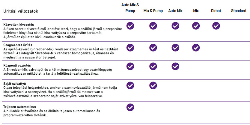 A zsírleválasztókat rendszeresen teljesen ki kell üríteni a visszatartott anyagok eltávolítása érdekében. Ennek megfelelően különböző ürítési megoldások állnak rendelkezésre, attól függően, hogy hol található a szeparátor, milyen gyakran szükséges az ürítés, valamint milyen elszállítási és hulladékkezelési lehetőségek állnak rendelkezésre.